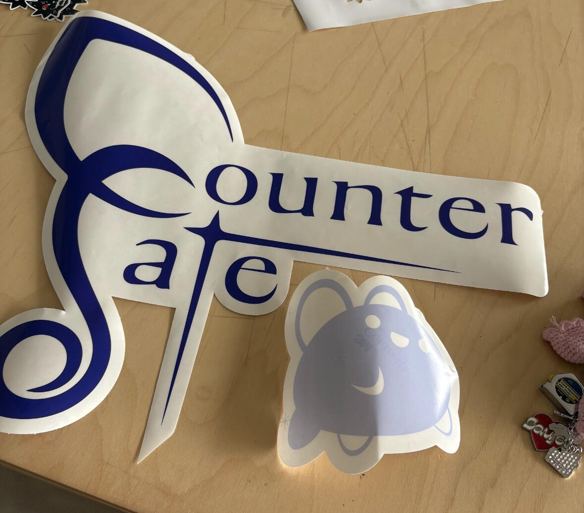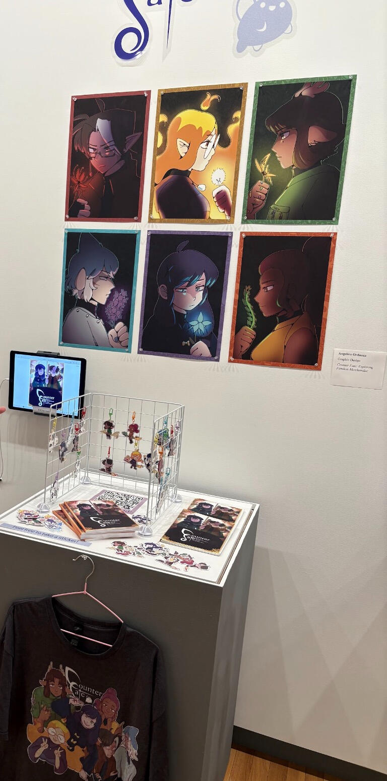 Graduating from Graphic Design in May 2025, I was given free choice on what to create for my Capstone Project. I decided to design a book layout full of concepts and art for Counter Fate. You can view and read the PDF here.This full project was inspired by my love of creating merchandise, and in order to have a quick reference to Counter Fate's story later. I dedicated the entire spring semester to figuring out how to create acrylic charms, printing shirts for my family in different sizes, writing the entire book, and figuring out a layout that adhered to my style.
